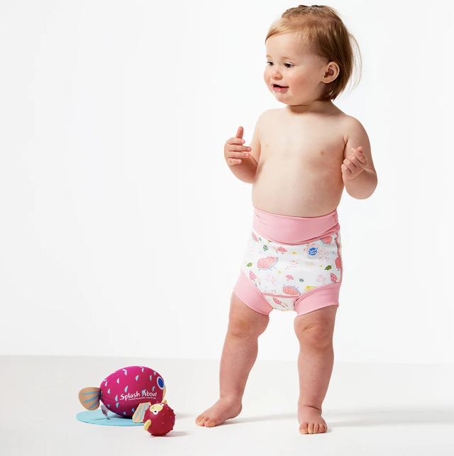 The Happy Nappy™ from Splash About is an innovative reusable swim nappy that reliably protects against faecal leaks. Ergonomically designed, the Happy Nappy™ is shaped to cup baby’s bottom to prevent any gaping, whilst specialist waist and thigh ribs fit snugly, to form a seal that prevents any solids leaking out into the pool.