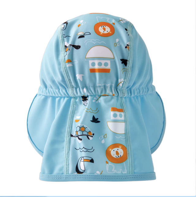 Protect little heads from the sun in these lightweight, quick drying legionnaire sunhats. Designed to be worn in and out of water, they are elasticated to fit the head without slipping. A peak helps to protect eyes from the sun, whilst the fabric at the back is long to cover the back of the neck, keeping children cool and sun protected.